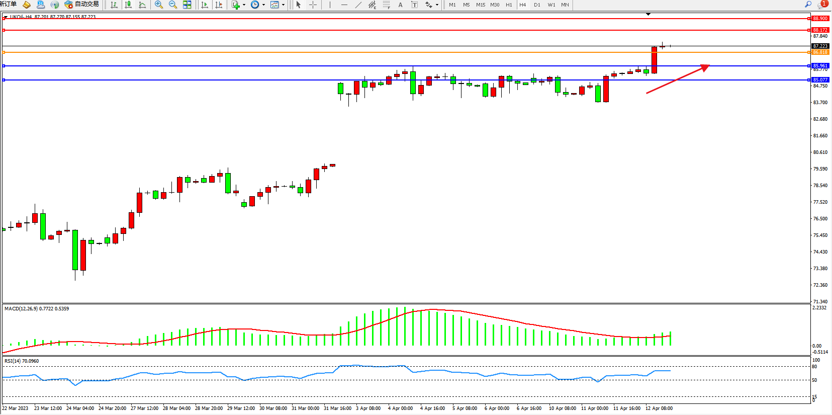 布油UKOil——4小时K线图显示: