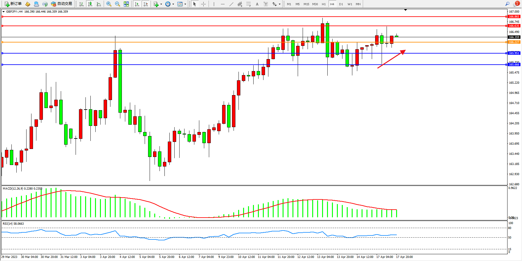 交易策略:166.227上方看涨,目标166.635 166.865