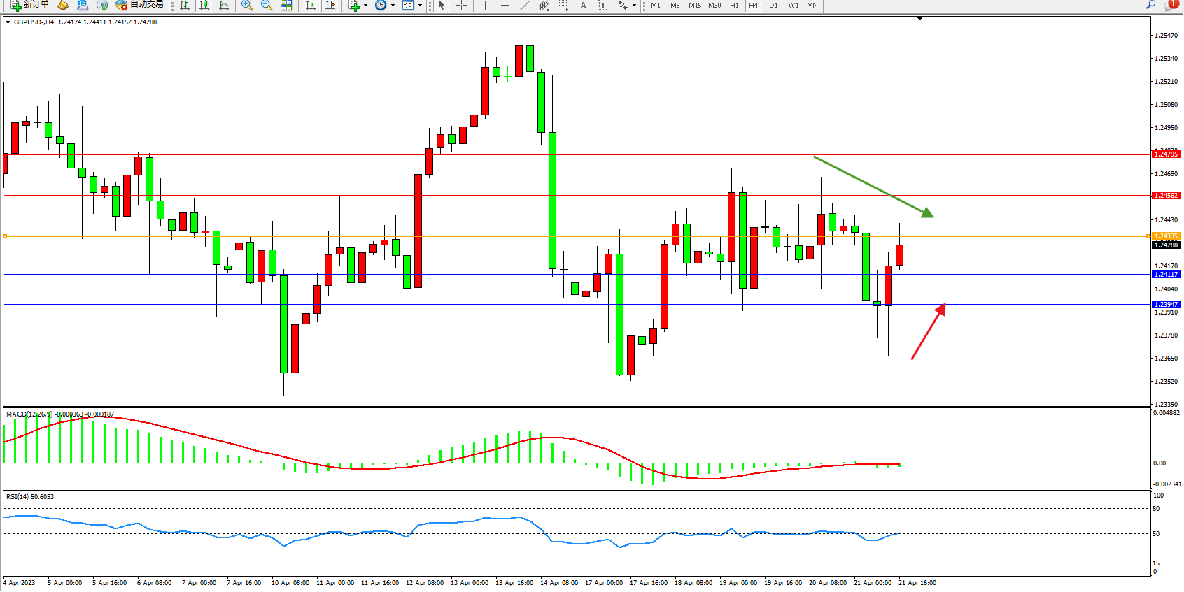 英镑美元GBPUSD ——4小时K线图显示: