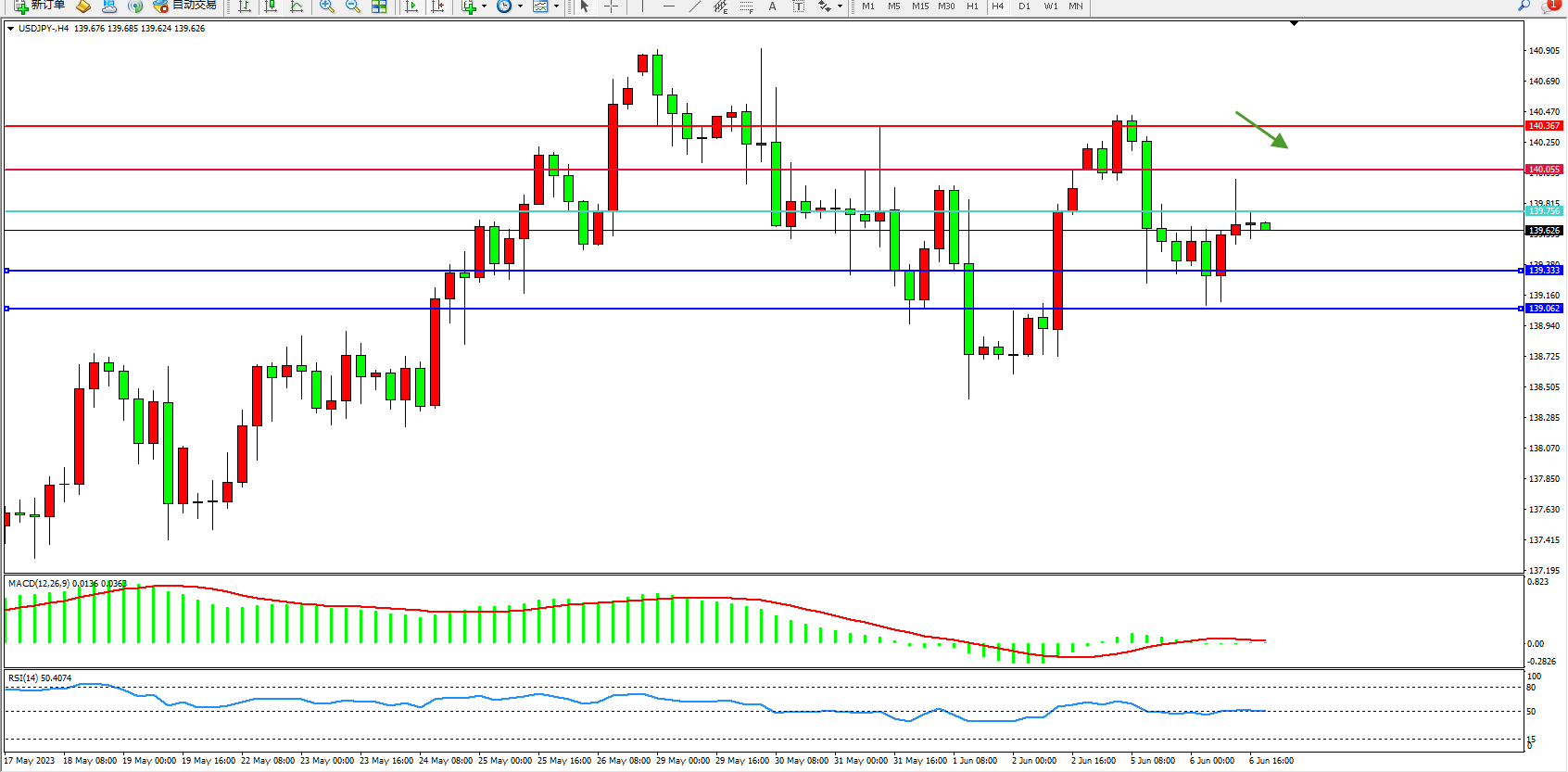 交易策略:139.756下方看跌,目标139.333  139.062