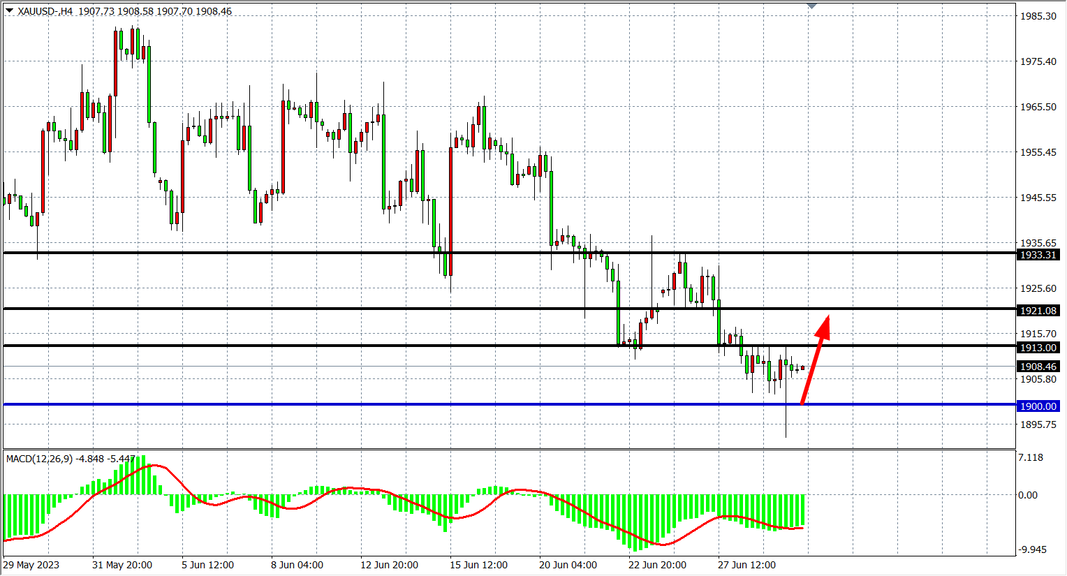 周四(6月29日)受一系列强劲美国经济数据影响,再度力挺美联储加息观点,现货黄金一度失守1900大关,而后又强势收复跌幅,最终收涨0.04%。展望后市,随着美指重新走强,金价进入下行趋势短期难以逆转。