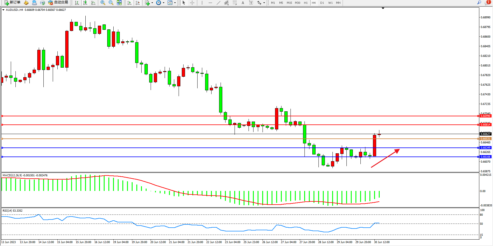 阻力位:0.66814  0.66990