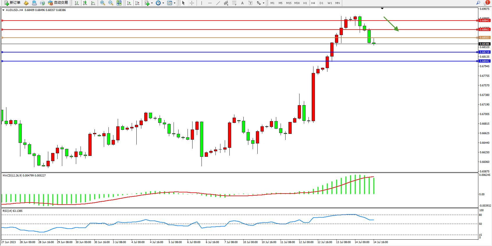 阻力位:0.68663  0.68843