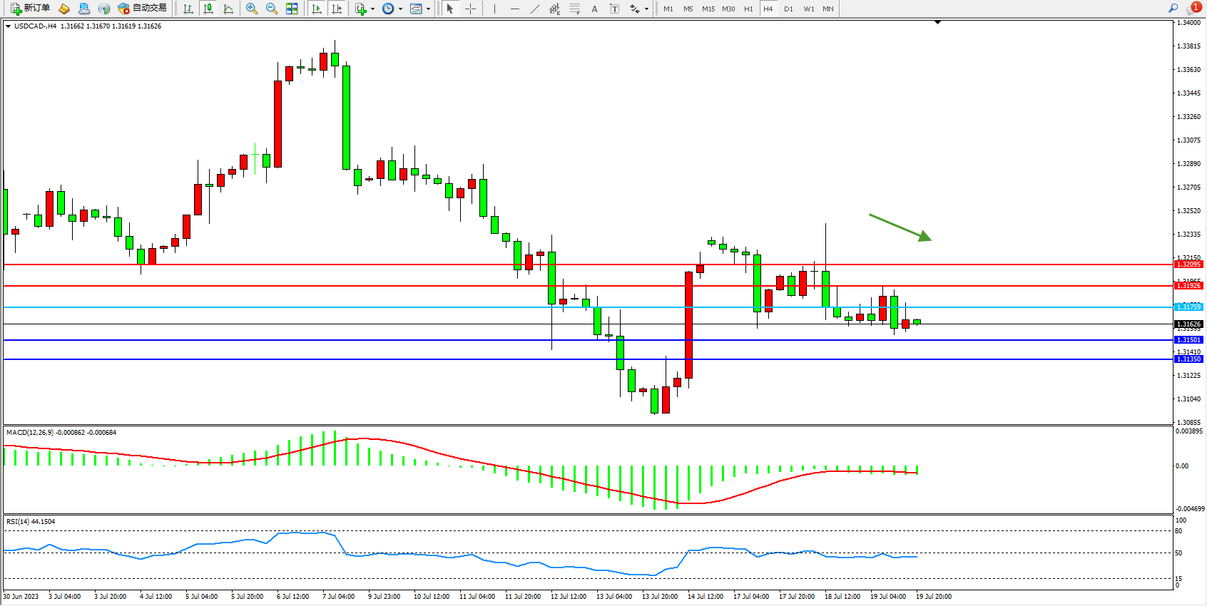 美元加元USDCAD——4小时K线图显示: