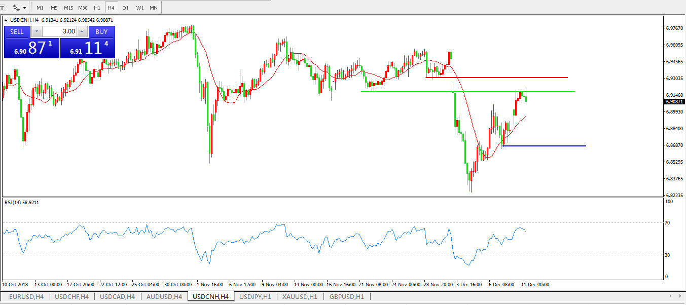备选策略: 在6.9200之上,看涨,目标价位为6.9300,然后为6.9557。