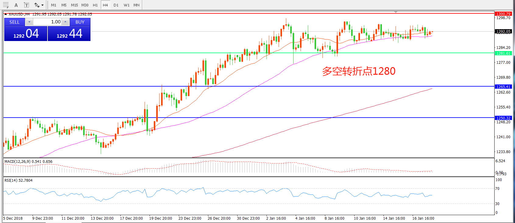 多空转折点:1280.00