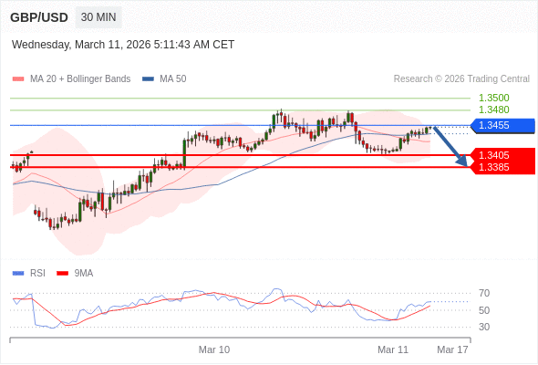 在 1.3455 之下,看跌,目标价位为 1.3405 ,然后为 1.3385 。