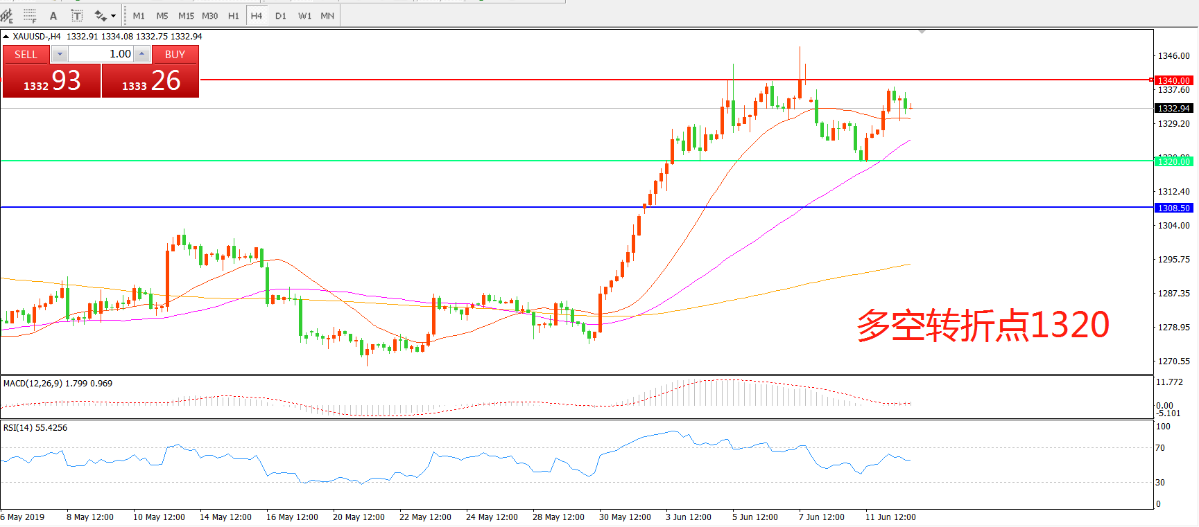 多空转折点:1320.00