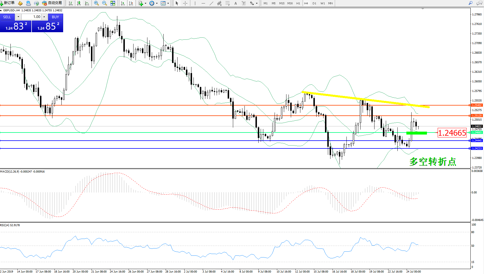 交易策略:1.24665上方看涨,目标1.25120、1.25402