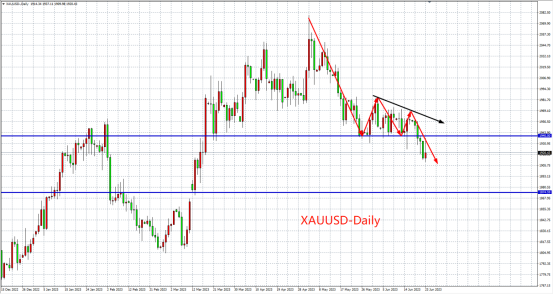 上周(6月19日-6月23日)现货黄金持续走跌。现货黄金明显下跌。